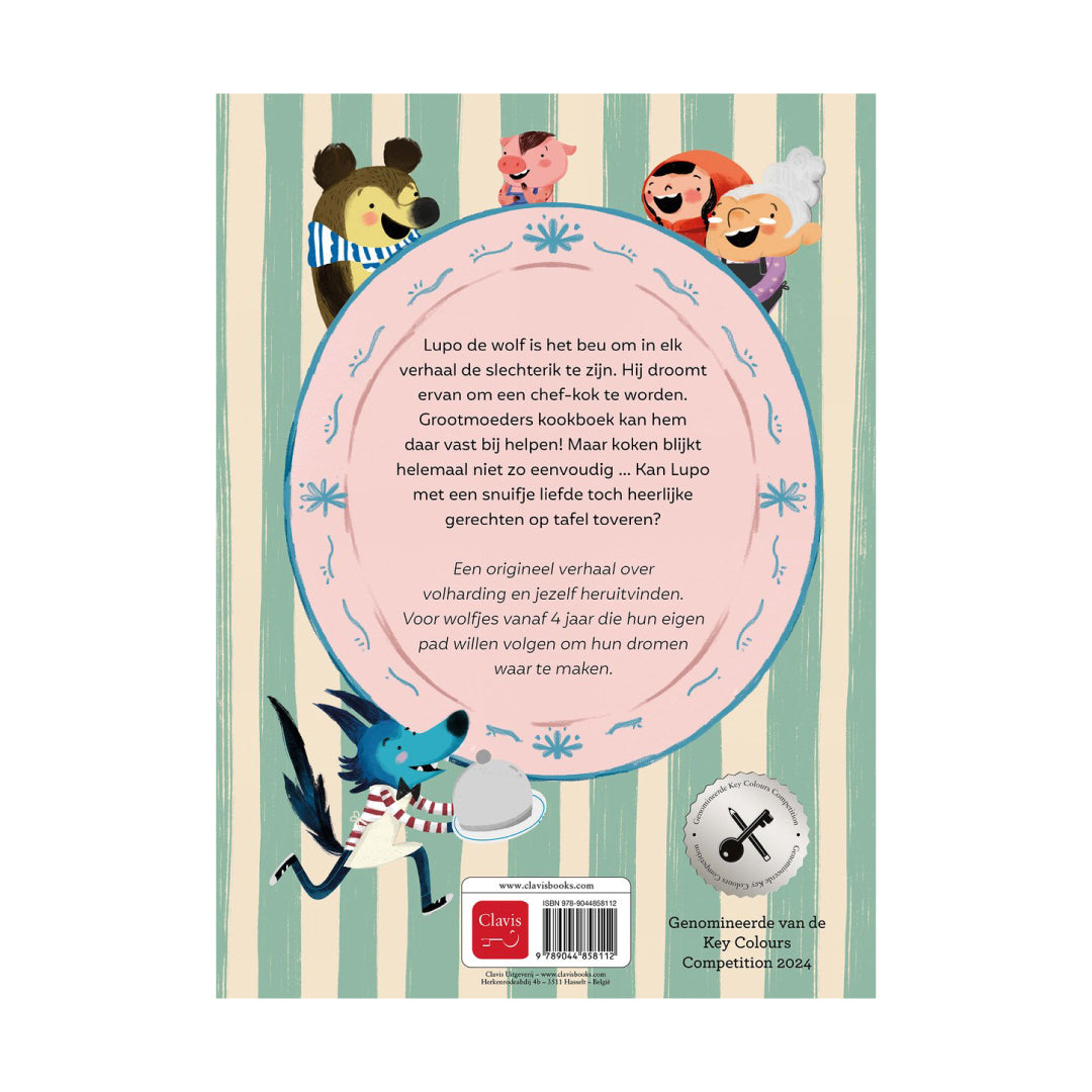 Lupo de wolf is het beu om in elk verhaal de slechterik te zijn. Hij droomt ervan om een chef-kok te worden. Grootmoeders kookboek kan hem daar vast bij helpen! Maar koken blijkt helemaal niet zo eenvoudig … Kan Lupo met een snuifje liefde toch heerlijke gerechten op tafel toveren? Een origineel verhaal over volharding en jezelf heruitvinden. Voor wolfjes vanaf 4 jaar die hun eigen pad willen volgen om hun dromen waar te maken.