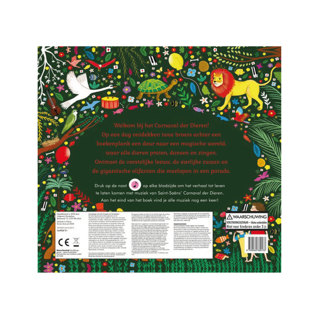 Ga mee op deze magische reis en breng het carnaval echt tot leven door op de muzieknoten te drukken. Je hoort bij ieder dier een fragment, afkomstig uit het muziekstuk van Camille Saint-Saëns. Aan het eind van het boek vind je een korte biografie van de componist met leuke weetjes over het muziekstuk. Je kunt er alle fragmenten nog een keer afspelen en je leest hoe de gebruikte instrumenten en muzikale technieken deze muziek zo bijzonder maken.
