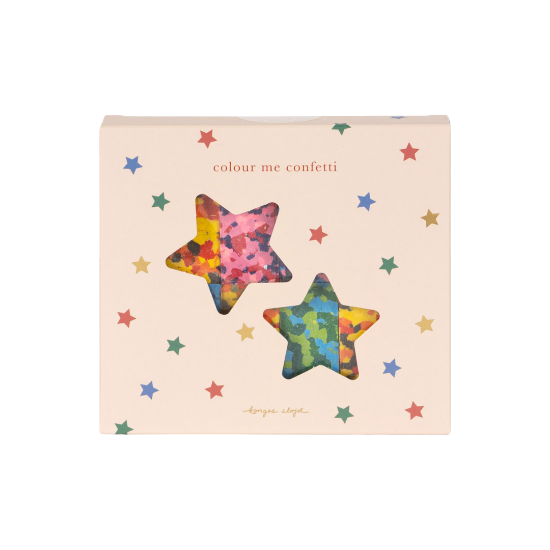 Konges Sløjd Confetti Crayons. Add a burst of color and creativity to every drawing with these playful confetti crayons. Designed in a mix of vibrant hues, each crayon lets little artists create unique, multicolored masterpieces with every stroke.