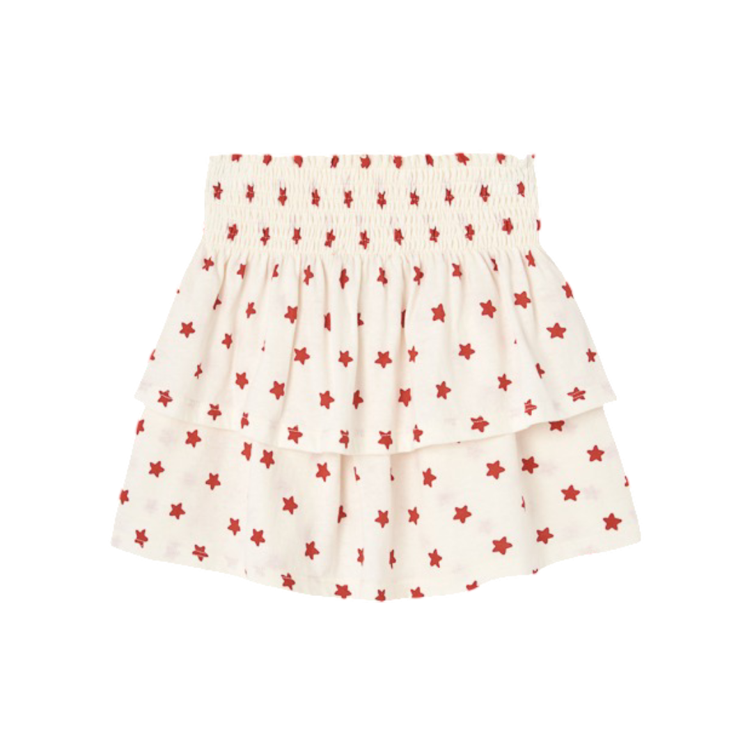 Playful and practical, this white kids skort from The Animals Observatory features a charming red star print throughout. The smocked elastic waist ensures a comfortable fit, while the layered design adds movement and style. Crafted from 100% cotton, it's soft against skin and perfect for active play or everyday wear.