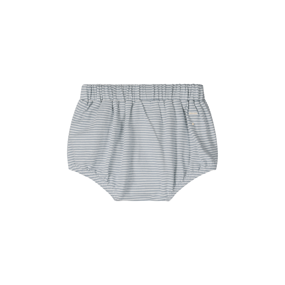 Gray Label Baby Bloomers in Stone Grey - Cream. Striped Gray Label Bloomers perfect for hot summer days. Featured with an elastic waist and leg openings. Made from soft organic cotton jersey. Gray Label logo embroidery is stitched at the back.