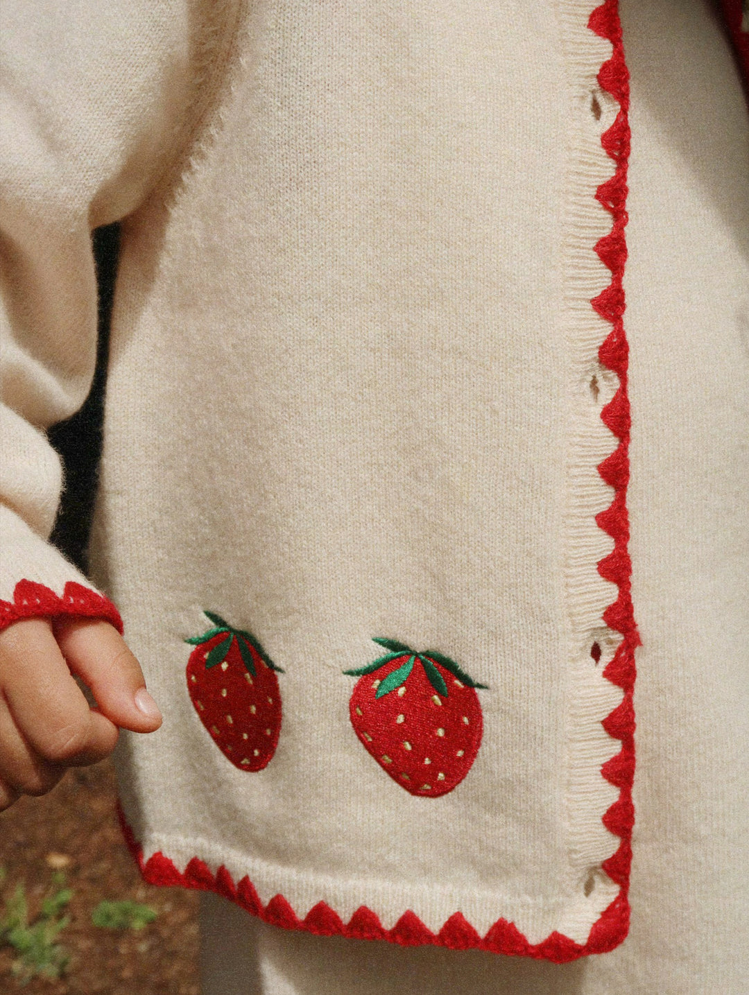 Wikkel je kleintje in warme, knusse charme met het Colette Vest van Konges Sløjd. Dit prachtige crèmekleurige wollen vest is versierd met speelse aardbeienborduursels en vrolijke rode accenten. Gemaakt van 100% pure wol en heerlijk zacht voor de gevoelige baby- en kinderhuid.