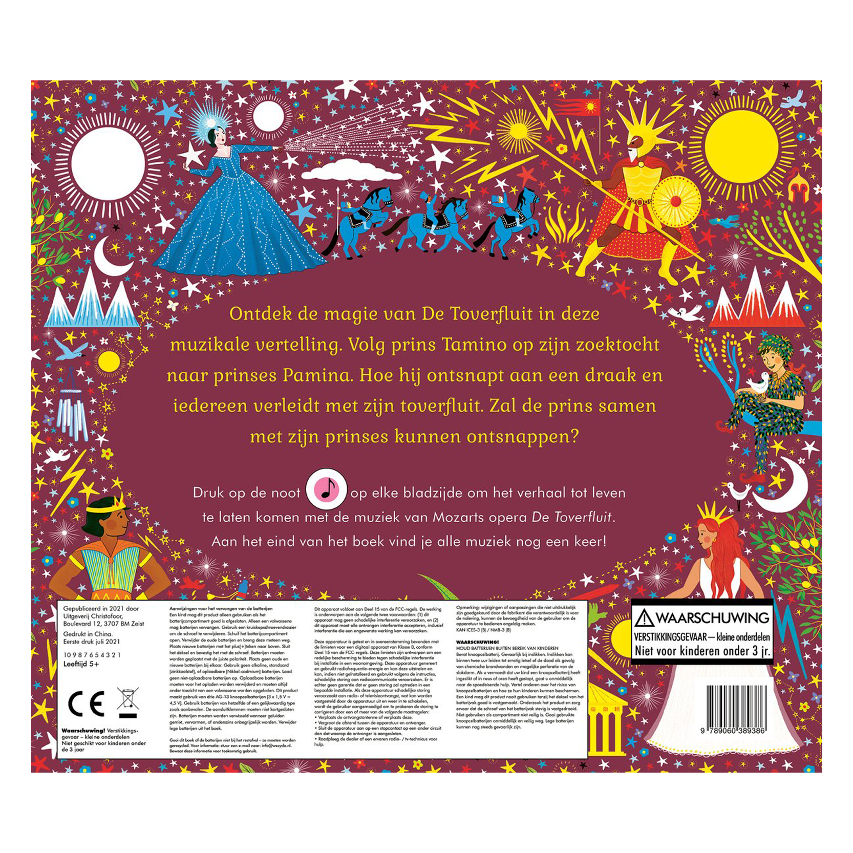 Laat je betoveren door Mozarts Die Zauberflöte. Volg prins Tamino op zijn zoektocht naar prinses Pamina. Kijk hoe hij ontsnapt aan een draak, ontkomt aan gevangenschap en iedereen verleidt met zijn toverfluit. Zal de prins samen met zijn prinses kunnen ontsnappen? De prachtige tekeningen van onder andere paleizen, prinsessen en draken komen extra tot leven als je op de muzieknoten in het boek drukt: je hoort fragmenten uit de opera! Aan het eind van het boek vind je uitleg over het muziekstuk met leuke weetjes over klassieke muziek.