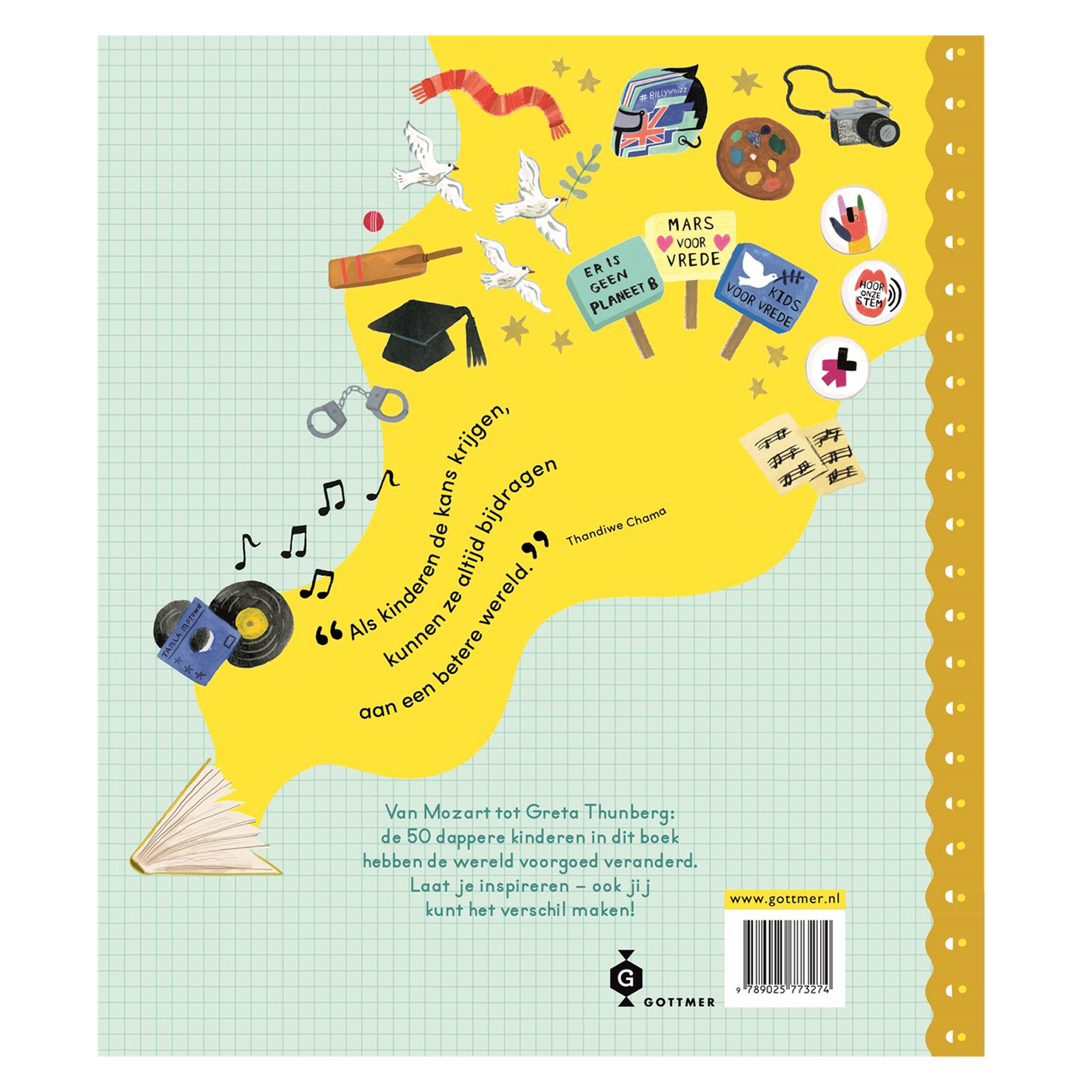 In 'Wereldkinderen' ontmoet je 50 kinderen en jongeren van over de hele wereld. Met hun passie, lef en creativiteit hebben ze elk een belangrijke culturele, politieke of sociale verandering in gang gezet. Van Louis Braille tot Greta Thunberg, van Pocahontas tot Mozart en van Emma Watson tot onze eigen Anne Frank: allemaal laten ze zien dat je absoluut niet volwassen hoeft te zijn om de wereld te veranderen. Daarmee is 'Wereldkinderen' een prachtig boek voor alle betrokken kinderen van nu.